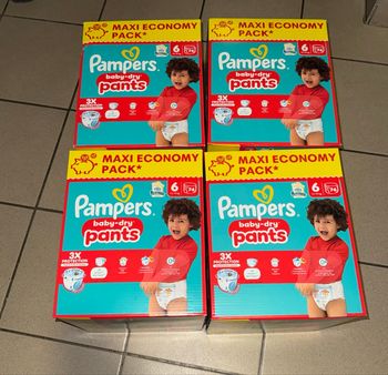 2 cartons de couches culottes Pampers baby dry T6/74 couches