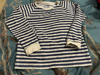 Haut de pyjama marinière rayé gris et bleu cfk nuit 10 ans