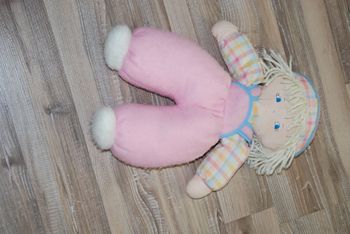 peluche doudou vintage chien lapin bleu et rose noeud rayé bleu jemini