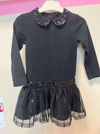 Robe noir fête à sequins et col Claudine