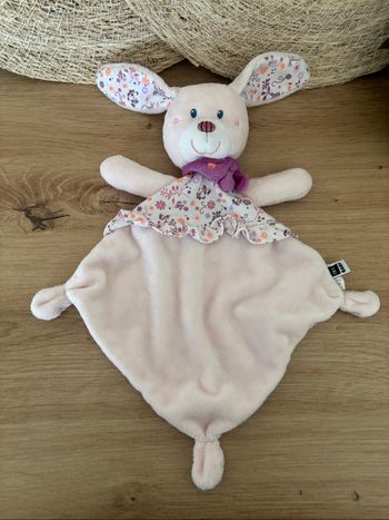 Doudou plat lapin rose fleurs tex baby
