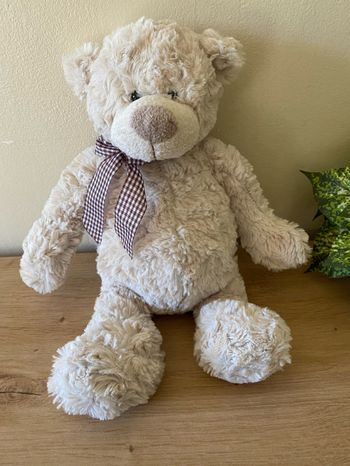 Doudou peluche ours écru noeud vichy marron gifi
