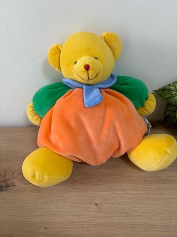 Doudou ours vintage patapouf orange jaune vert bleu nicotoy