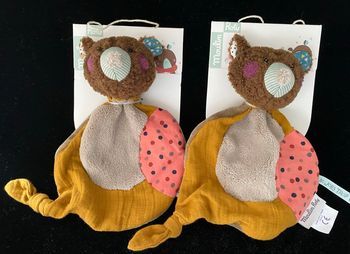 B6120❤️Lot 2 Doudous plat ours brun les jolis trop beaux Moulin Roty marron