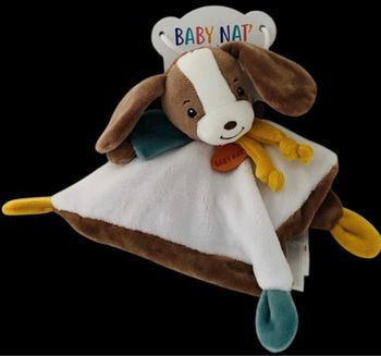 ❤️B4372 Doudou Plat Mouchoir Babynat Baby Nat Lucien Chien Beige Blanc Marron