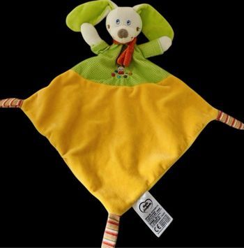 ❤️B5175 Doudou plat Mouchoir Chien Lapin Chat MOTS D'ENFANTS Vert Jaune