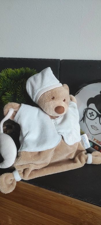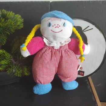 doudou peluche lapin pampers boule blanc bleu carreaux vichy rose ancien vintage