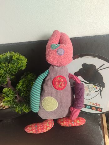 Doudou plat vache rose blanc papillon fleur Soft friends rayé rayure marron