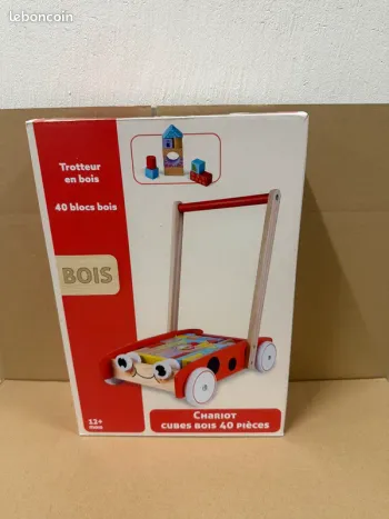 Chariot en bois avec 40 cubes éducatifs multicolore