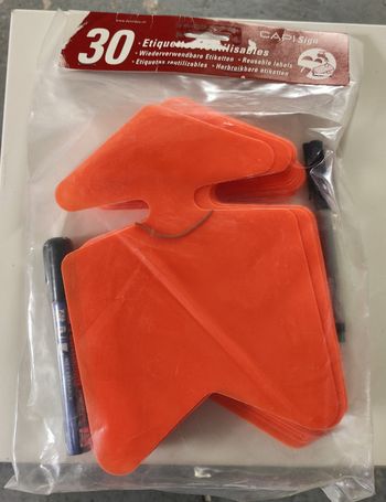Paquet neuf de 30 flèches oranges avec 2 marqueurs inclus (effaçable à l'eau)