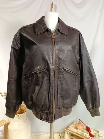 Blouson cuir marron Vintage | Camel Collection | t. L