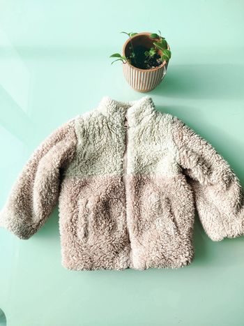 Manteau effet fourrure bicolore beige et rose Gémo taille 18 mois