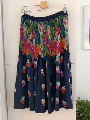Jupe vintage bleu marine à fleurs multicolores taille 40