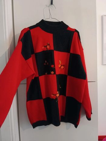 Pull Vintage rouge et noir carrés damier taille 42/44 estimée
