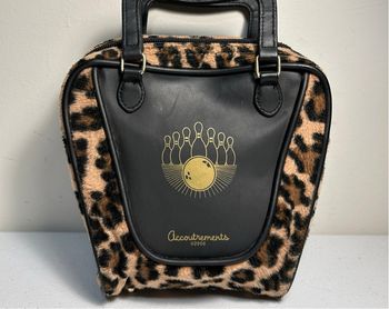 RARE Petit sac, style bowling, fausse léopard vintage