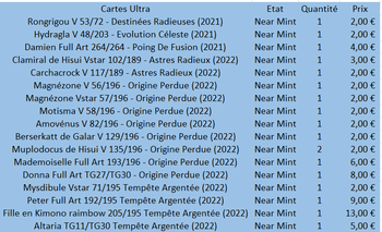 Sur Beebs, nous vous proposons une grande sélection de cartes Pokémon rares pas chères pour les collectionneurs et les joueurs. Nous proposons des cartes Pokémon rares de différentes éditions, y compris des cartes holographiques, et des cartes secrètes rares. Nous nous engageons à offrir des produits de qualité à des prix abordables pour répondre aux besoins de tous les passionnés de Pokémon. Nous sommes fiers d'offrir une grande variété de cartes Pokémon rares à collectionner à tous les fans de Pokemon. Nous sommes convaincus que vous trouverez les cartes Pokémon rares que vous cherchez sur notre site. Commandez dès maintenant sur Beebs pour découvrir notre sélection de cartes Pokémon rares pas chères et ajoutez des pièces précieuses à votre collection. Nous sommes là pour vous aider à trouver les cartes Pokémon rares que vous cherchez pour compléter votre collection et à des prix avantageux.