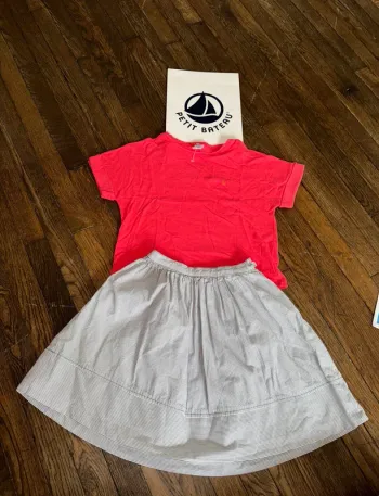 tshirt rose avec du lin et jupe Petit Bateau 6 ans