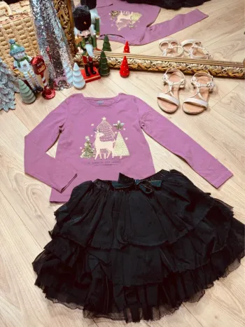 Taille 8 ans tenue 2 pièces Noël fille Kiabi Image violet noir or * sapins * 🎄