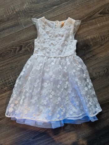 Robe de cérémonie fille blanche et bleu foncée avec dentelle strass et noeux