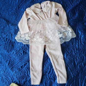 🌸 Ensemble 2 pièces blouse a volant dentelle et jegging pantalon rose côtelé taille 18 mois