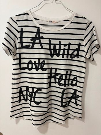 Tee shirt à manches longues blanc et bleu marine à motifs, taille 12 ans.