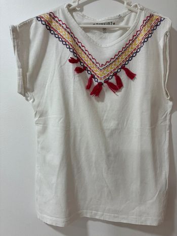 Débardeur blanc à fleurs, taille 12 ans, marque La Redoute.