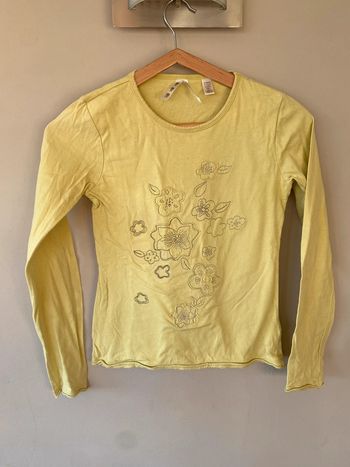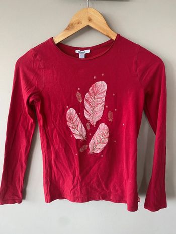 tee shirt manche longue bleu ciel rayures roses 14 ans
