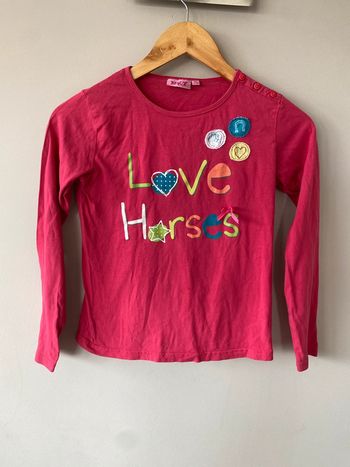 T shirt bleu foncé, manches longues, avec tête de cheval, Manguun Kids, 13 ans, nickel