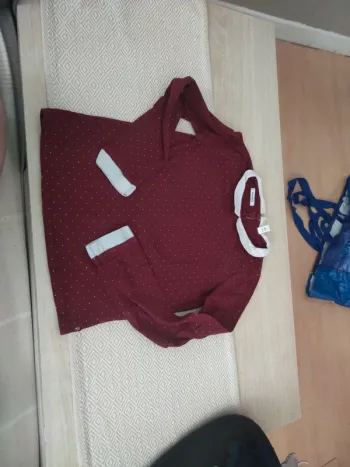 Tee shirt manches longues bordeaux col claudine Okaïdi 12 ans