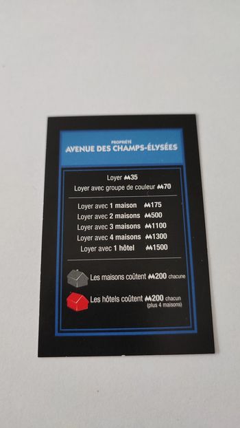 Carte Avenue des Champs-Elysées pièce jeu de société Monopoly mauvais perdants Hasbro Gaming #B77