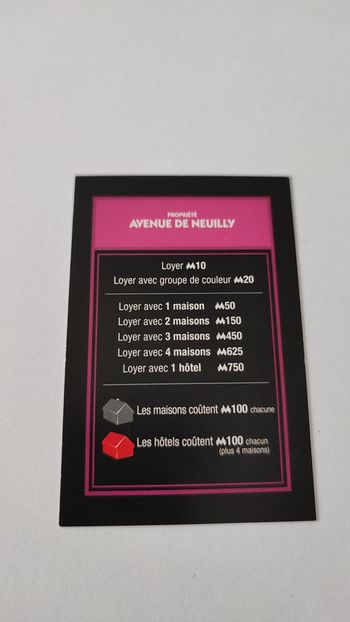 Carte Avenue de Neuilly pièce détachée jeu de société Monopoly mauvais perdants Hasbro Gaming #B77