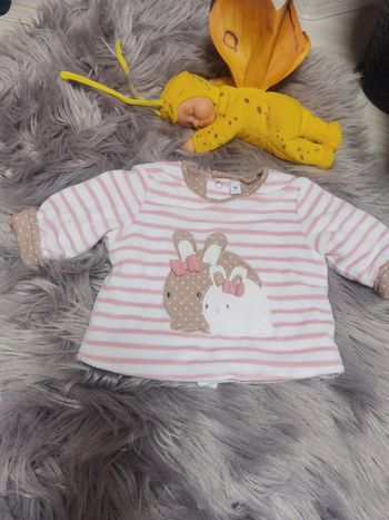 Sweat bébé fille rose taille 56 cm = 1 mois motif lapin