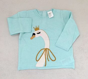 Pull H&M h&m h et m pull cygne coton neuf 6/9 mois 74cm