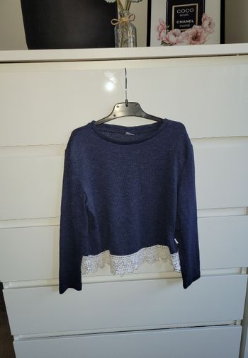 Pull mi saison à manches longues, bleu foncé ligné blanc, Petit Bateau, 8 ans