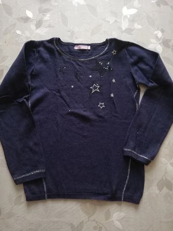 Pull 8 ans bleu marine et sequins.