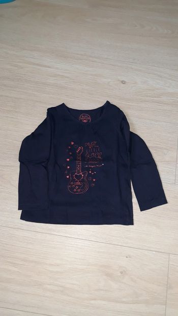 T shirt bleu fonce, manches longues, Okaïdi, 3 ans peu mis