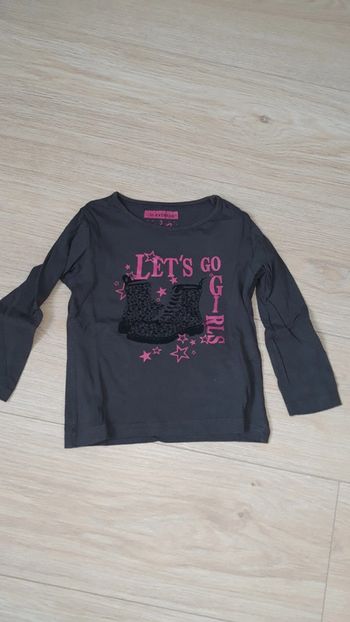 T shirt manches longues noir, avec brillants. Taille 2/3 ans