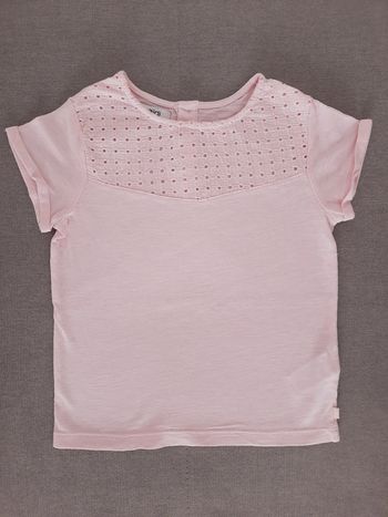 T-shirt manches courtes Okaïdi 5 ans rose clair avec haut ajouré