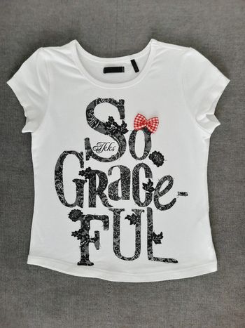 T-shirt manches courtes IKKS 5 ans blanc inscriptions noires effet dentelle