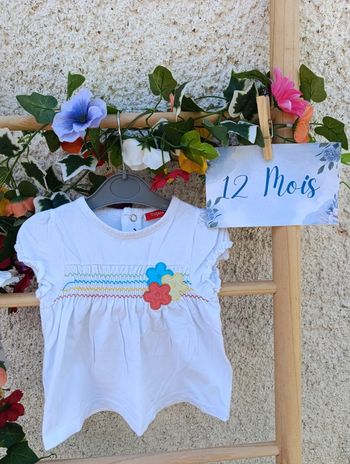T-shirt manches courtes pour fille taille 12mois marque baby très bon état