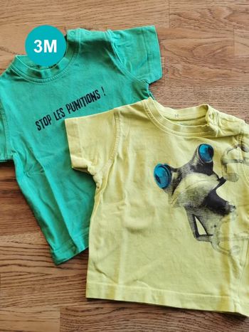 Lot 2 t-shirts manches courtes jaune vert Grain de blé 3 mois