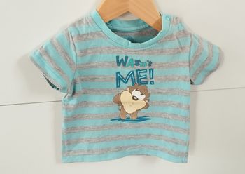Tee-shirt manches longues marron à rayures noires thème animaux Kitchoun taille 3 mois