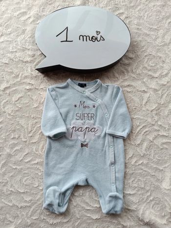 Pyjama grenouillère velours Garçon 1 mois Mon super Papa nuage Kiabi