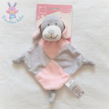 Doudou plat Chien grelot gris rose rayé Tom & Kiddy