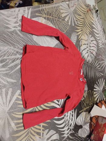 T shirt manches longues Okaidi 2 ans motif feuilles roses argents sequins