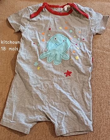 Combishort mixte bebe fille garçon 2-4 mois h&m gris barbapapa