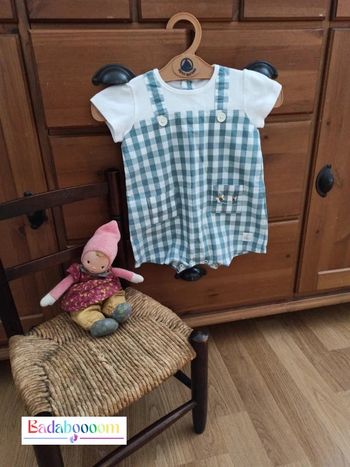 Combinaison Petit Bateau, coloris vichy bleu et blanc. Taille 12 mois.