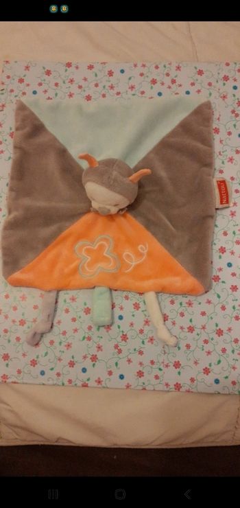 doudou plat chien bleu beige marron escargot Nattou rayure blanc orange Abeille