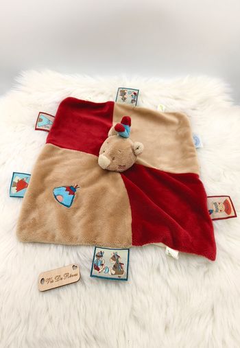 Doudou hochet grelot écureuil castor NOUKIE'S bleu beige marron création 2012