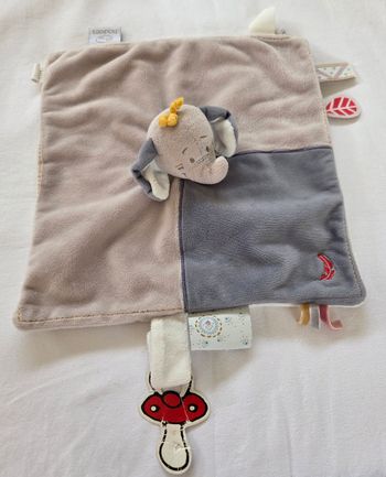 Doudou plat éléphant Bali marron beige blanc NOUKIES création 2024 lune étoile attache tétine